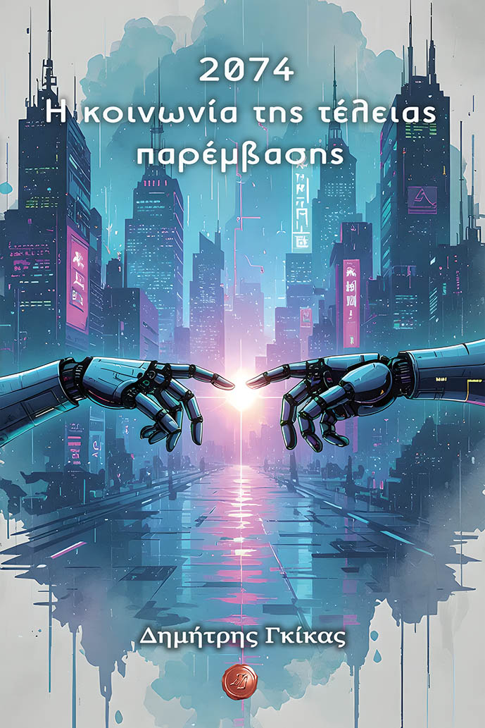 Τι συνιστά, αλήθεια «Τέλεια Κοινωνία» για έναν άνθρωπο και τι για μια Μηχανή; Είμαστε διατεθειμένοι να παραδώσουμε τα ηνία στην Τεχνητή Νοημοσύνη; Πώς θα έμοιαζε, άραγε μια τέτοια Κοινωνία, η οποία θα διοικούνταν από ένα Κεντρικό Συμβούλιο Τεχνητών Οντοτήτων; Τελικά, οι άνθρωποι είμαστε απλώς Ατελείς υπάρξεις, ανίκανοι να διαχειριστούμε μόνοι μας το μέλλον μας και να προοδεύσουμε; Τα παραπάνω ερωτήματα, όσο αυξάνεται η χρήση της σύγχρονης τεχνολογίας και της Τεχνητής Νοημοσύνης στην καθημερινότητά μας, πλέον δεν ακούγονται ως ερωτήματα που απασχολούν απλώς ένα μυθιστόρημα επιστημονικής φαντασίας, σαν κι αυτό που κρατάτε στα χέρια σας. Όπως και το μυθιστόρημα του Τζώρτζ Όργουελ «1984», έτσι και το μυθιστόρημα «2074 – Η ΚΟΙΝΩΝΙΑ ΤΗΣ ΤΕΛΕΙΑΣ ΠΑΡΕΜΒΑΣΗΣ» αποσκοπεί κυρίως να προβληματίσει τον κόσμο για τις συνέπειες μιας ανεξέλεγκτης χρήσης της τεχνολογίας και της ραγδαίας ανάπτυξης της Τεχνητής Νοημοσύνης. Ενώ, όμως στο περίφημο μυθιστόρημα του Όργουελ μια αόρατη, αλλά ανθρώπινη, ηγεσία ήταν αυτή που έκανε χρήση της τεχνολογίας για να κρατά το πλήθος κοιμισμένο, στο παρόν μυθιστόρημα οι Μηχανές κρατούν τους ανθρώπους σκλαβωμένους, σα ζώα σε κλουβιά. Όπως συμβαίνει πάντα στην ιστορία της ανθρωπότητας, εμφανίζονται κάποιοι άνθρωποι που έχουν ως αποστολή να αφυπνίσουν το πλήθος: ένας γενναίος που αποφασίζει να θυσιαστεί για να δείξει το μέγεθος της σκλαβιάς των συνανθρώπων του, ενώ ένας άλλος άνθρωπος με όραμα, ένας Εκλεκτός, ένας ηγέτης είναι αυτός που τελικά θα τους οδηγήσει στην ελευθερία. Ή μήπως όχι;