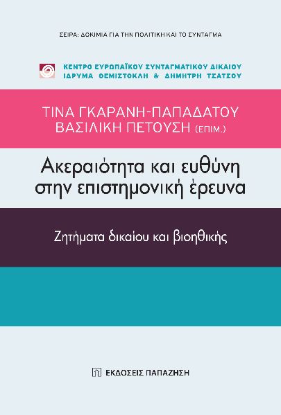 Η έκδοση περιλαμβάνει μια σειρά κειμένων, τα οποία πραγματεύονται διαστάσεις της έννοιας και του φαινομένου της επιστημονικής ακεραιότητας και των παραβιάσεών της. Αφορμές για αυτή την πρωτοβουλία στάθηκαν η αυξημένη αναγνωρισιμότητα του ζητήματος, το ενδιαφέρον του Κέντρου Ευρωπαϊκού Συνταγματικού Δικαίου για τα όρια της ακαδημαϊκής ευθύνης και ελευθερίας, αλλά και τα ευρήματα του ερευνητικού προγράμματος DEFORΜ (DEtermine the global and Financial cost Of Research Misconduct), που χρηματοδοτήθηκε από την Ευρωπαϊκή Ένωση (Η2020) και στο οποίο συμμετείχαν το Πανεπιστήμιο Κρήτης (Τμήμα Κοινωνιολογίας) και η πρώην Εθνική Σχολή Δημόσιας Υγείας (ΕΣΔΥ) (νυν Τμήμα Πολιτικών Δημόσιας Υγείας του Πανεπιστημίου Δυτικής Αττικής). Ορισμένα από τα κείμενα παρουσιάστηκαν στην επιστημονική ημερίδα με θέμα «Ακεραιότητα και ευθύνη στην επιστημονική έρευνα: Ζητήματα δικαίου και βιοηθικής», η οποία οργανώθηκε από την ΕΣΔΥ και το Κέντρο Ευρωπαϊκού Συνταγματικού Δικαίου-Ίδρυμα Θεμιστοκλή και Δημήτρη Τσάτσου, την Τρίτη 4 Δεκεμβρίου 2018 στο Αμφιθέατρο της Εθνικής Σχολής Δημόσιας Υγείας. Η ημερίδα εστίασε στη διερεύνηση των πλευρών της ερευνητικής δραστηριότητας, οι οποίες άπτονται του πεδίου της συνταγματικότητας, της δεοντολογίας και της βιοηθικής. Η συλλογή αυτών των κειμένων καταδεικνύει με σαφήνεια ότι η επιστημονική έρευνα αποτελεί ένα πεδίο όπου οι προκλήσεις είναι συνεχείς και διαχρονικές και όπου η επιστήμη, η ηθική και ο νόμος διασταυρώνονται μέσω νομικού, επιστημονικού και φιλοσοφικού λόγου. Παράλληλα, ανοίγει τον δρόμο για μια περαιτέρω διερεύνηση του ζητήματος στο πλαίσιο της πρόσφατης πανδημίας COVID-19, η οποία καθημερινά αναδεικνύει και οξύνει την πολυπλοκότητα, την έκταση και το περιεχόμενο διαχρονικών προκλήσεων στη σχέση επιστήμης και κοινωνίας, αλλά πολύ περισσότερο στην τριαδική σχέση επιστημονικής έρευνας, κοινωνίας και πολιτικών δημόσιας υγείας. Αν και είναι ακόμη νωρίς για την πλήρη ή έστω μερική αποτίμηση του χειρισμού, της αντιμετώπισης και των συνεπειών της πανδημίας σε κοινωνικο-οικονομικό και πολιτικό επίπεδο, όπως και των συνεπειών στην τεκμηριωμένη πλέον βιβλιογραφικά και εμπειρικά «κρίση εμπιστοσύνης» στην επιστήμη, ένα πλήθος άλλων ζητημάτων που άπτονται αυτής της σχέσης, όπως η διαχείριση κρίσεων, η ασφάλεια και η (επαπειλούμενη) ιδιωτικότητα, έχουν έρθει στην επιφάνεια. Η πανδημία ανέδειξε ειδικότερες και καινοφανείς εκφάνσεις ζητημάτων, τα περισσότερα από τα οποία δεν είναι καινούργια αλλά παραμένουν και θα παραμένουν καίρια, ιδιαίτερα αν λάβουμε υπόψη μας προηγούμενες σχετικά πρόσφατες παρόμοιες κρίσεις όπως την «κρίση» που συνδέθηκε σε παγκόσμιο επίπεδο με την αντιμετώπιση του Η1Ν1 και η οποία άφησε «κατάλοιπα» δυσπιστίας σε επιστήμονες, θεσμούς και πολιτικές ενισχύοντας εμμέσως «κινήματα» όπως το αντιεμβολιαστικό. Η τεράστια επίσης οικονομική κινητοποίηση σε επίπεδο έρευνας αναδεικνύει την ανάγκη ιδιαίτερα κριτικού στοχασμού αναφορικά με την τεκμηρίωση, την αποτίμηση των επιπτώσεων, την αναζήτηση και εφαρμογή λύσεων, και τον τρόπο λήψης αποφάσεων και κατανομής θεραπευτικών και διαγνωστικών πόρων βάσει συγκεκριμένων αρχών και κριτηρίων. Οι συγγραφείς του τόμου: Τίνα Γκαράνη-Παπαδάτου, Παναγιώτης Κάβουρας, Βασιλική Μολλάκη, Βασιλική Πετούση, Ειρήνη Σηφάκη, Δέσποινα Σκυβάλου, Κώστας Α. Χαριτίδης
