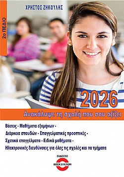 Είσαι βέβαιος πως η σχολή που έχεις επιλέξει είναι η σωστή; Γνωρίζεις τα μαθήματα του κάθε εξαμήνου, ώστε να ξέρεις αν αυτά ανταποκρίνονται στις δεξιότητες και στις επιθυμίες σου; Ποιες είναι οι πιθανές επαγγελματικές προοπτικές αλλά και τα συνδεόμενα με την κάθε σχολή επαγγέλματα; Απαντήσεις σε όλα αυτά τα ερωτήματα -καθώς και σε άλλα πολλά (βάσεις προηγούμενου έτους, ηλεκτρονικές διευθύνσεις κ.ά.)- παρέχουν τα 4 βιβλία (ένα για κάθε πεδίο) της σειράς ΑΝΑΚΑΛΥΨΕ ΤΗ ΣΧΟΛΗ ΠΟΥ ΣΟΥ ΑΞΙΖΕΙ αποτελώντας αναμφισβήτητα την κορυφαία σειρά επαγγελματικού προσανατολισμού στην Ελλάδα!