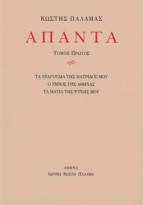 Ανατυπώθηκε πρόσφατα από το Ίδρυμα Κωστή Παλαμά ο εξαντληθείς Α΄ τόμος των Απάντων του ποιητή, ο οποίος περιέχει Τα τραγούδια της Πατρίδος μου, τον Ύμνο της Αθηνάς και Τα μάτια της ψυχής μου...