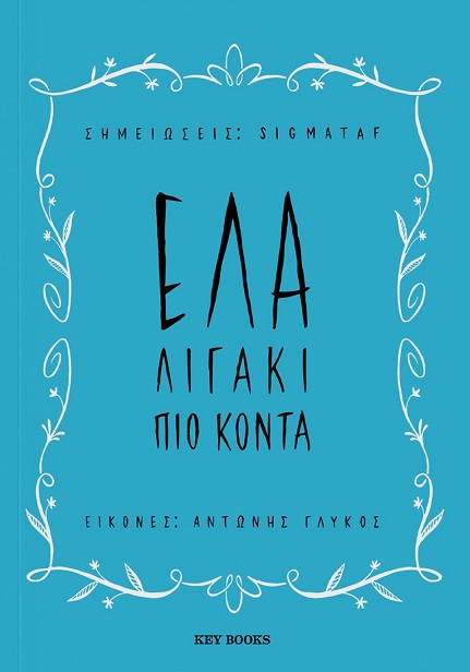 Τα ιδιαίτερα σχέδια του graphic designer Αντώνη Γλυκού συναντούν τους στίχους του μουσικού παραγωγού Sigmataf σε ένα λεύκωμα που αποτυπώνει με τρόπο μοναδικό τη γλυκόπικρη γεύση της αγάπης. Στίχοι, αποσπάσματα από αναρτήσεις στα social media και πρωτότυπα, νέα κείμενα συναρμολογούν μια ιστορία ερωτικής απώλειας, αλλά και ένα πέρασμα από το σκοτάδι στο φως, ανοιχτό σε ερμηνείες και αναγνώσεις. Στο φόντο, μια σχεδόν κινηματογραφικής ροής εικονογράφηση επεκτείνει τον λόγο με πρόσθετα σεναριακά επίπεδα, αφηγούμενη ιστορίες μέσα στις ιστορίες. Όπως λένε οι δυο δημιουργοί, «δουλέψαμε στην κατεύθυνση ενός εκδοτικού υβριδίου που απευθύνεται δυνητικά σε όλες τις ηλικίες από την εφηβεία και πάνω. Δανειστήκαμε στοιχεία από τον κινηματογράφο, την ποίηση, την ψυχοθεραπεία, το graphic novel και το πολυτελές coffee table καλλιτεχνικό λεύκωμα». Το Έλα λιγάκι πιο κοντά είναι ένα βιβλίο για όσους πιστεύουν ότι η αγάπη παραμένει η πιο διακριτική δύναμη στη γη.