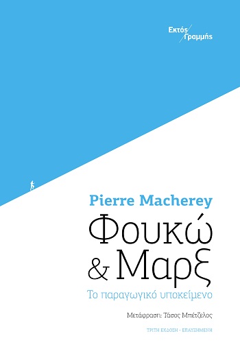 Είναι αδύνατον να στοχαστούμε σήμερα την ιστορία χωρίς να χρησιμοποιήσουμε μια σειρά από έννοιες που συνδέονται άμεσα ή έμμεσα με τη σκέψη του Μαρξ και χωρίς να τοποθετηθούμε σε έναν ορίζοντα που περιέγραψε και όρισε ο Μαρξ. Τελικά, θα μπορούσαμε να αναρωτηθούμε αν υπάρχει κάποια διαφορά μεταξύ τού να είναι κανείς ιστορικός και του να είναι μαρξιστής. Michel Foucault Ο Πιερ Μασερέ ακολουθεί σε αυτή τη μελέτη το μονοπάτι που οδηγεί από τον Φουκώ στον Μαρξ και επιχειρεί να διαβάσει ορισμένες από τις κομβικές έννοιες του Μαρξ υπό το φως των αναλύσεων του Φουκώ. Παρουσιάζει έτσι μια πρωτότυπη εισαγωγή στη θεωρία του Μαρξ για τον καπιταλιστικό τρόπο παραγωγής και συγχρόνως αναδεικνύει την επικαιρότητα των επεξεργασιών του Φουκώ για τις έννοιες της εξουσίας, της αντίστασης και της βιοπολιτικής. Προτείνει, σε αυτή τη βάση, την έννοια του «παραγωγικού υποκειμένου» ως ένα κομβικό σημείο συνάντησης των δύο στοχαστών και ως κλειδί για την κατανόηση του μηχανισμού της καπιταλιστικής εκμετάλλευσης. Η τρίτη και επαυξημένη έκδοση του βιβλίου δεν υπογραμμίζει μόνο τη θεωρητική σημασία και τη διαρκή επικαιρότητα της προβληματικής του Μασερέ· επισημαίνει επίσης την κρισιμότητα μιας ερευνητικής πρακτικής που, αντί να αντιμετωπίζει το έργο του Μαρξ ως κάποιο κλειστό σύστημα «αλήθειας», επιμένει στον ανοιχτό και ερευνητικό του χαρακτήρα, οργανώνοντας τη συνάντηση του έργου αυτού με εκείνο ενός στοχαστή όπως ο Φουκώ, που όρισε τη σύγχρονη υλιστική ριζοσπαστική σκέψη. Αυτήν ακριβώς την ερευνητική πρακτική επιχειρούμε να προεκτείνουμε εγκαινιάζοντας τις «Παρεκκλίσεις», τη νέα σειρά των εκδόσεων Εκτός Γραμμής, της οποίας προγραμματικό αίτημα είναι ακριβώς η συνάντηση της μαρξιστικής θεωρίας με προβληματικές που μπορεί τυπικά να μην εγγράφονται στην επικράτειά της, αλλά που το σύγχρονο υλιστικό φορτίο τους είναι δυνατόν να ωθήσει στην ανανέωσή της, να επεκτείνει τη δραστικότητά της, να προσδώσει νέα προοπτική σε πλευρές εξαιρετικά κρίσιμες για τη θεωρητική της εγκυρότητα.