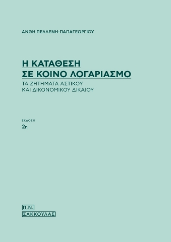 Σύμφωνα με τον Ν. 5638/1932, τα χαρακτηριστικά της κατάθεσης σε κοινό λογαριασμό είναι, πρώτον, ότι ο καθένας από τους συνδικαιούχους μπορεί να αναλάβει το σύνολο του ποσού της κατάθεσης, δεύτερον, ότι σε περίπτωση θανάτου ενός από τους συνδικαιούχους η κατάθεση περιέρχεται αυτοδικαίως στους επιζώντες λοιπούς δικαιούχους, με συνέπεια οι κληρονόμοι να μην έχουν δικαίωμα επί της καταθέσεως, τρίτον, ότι η κατάθεση είναι ελεύθερη από κάθε φόρο κληρονομίας, και τέλος ότι η κατάθεση είναι περιορισμένως κατασχετή. Στο πλαίσιο αυτό, η μελέτη πραγματεύεται θέματα που αφορούν τη νομική φύση και τη λειτουργία της κατάθεσης σε κοινό λογαριασμό, τη διάκρισή της από τον συμπλεκτικό λογαριασμό, καθώς και τα ζητήματα του κληρονομικού δικαίου που ανακύπτουν. Η δεύτερη έκδοση του έργου έχει λάβει υπόψη της τις νεότερες θέσεις της θεωρίας, καθώς και τις τάσεις της ογκώδους σχετικής νομολογίας.