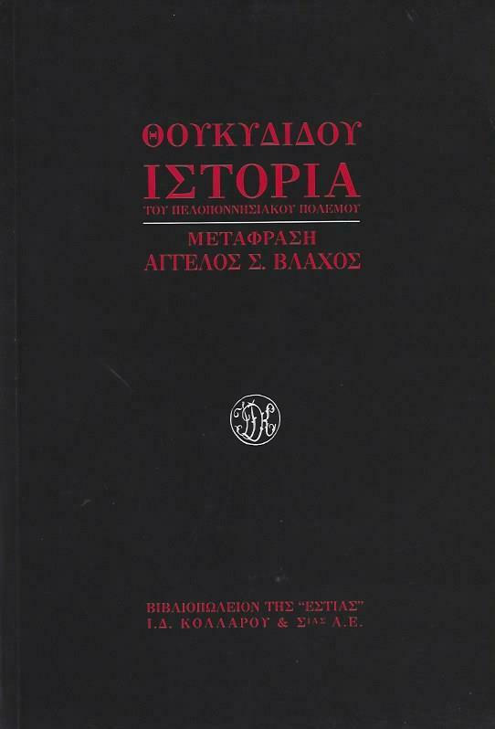 O Θουκυδίδης έζησε κατά το δεύτερο ήμισυ του αιματηρότερου αιώνα της κλασικής εποχής. Έγραψε την Iστορία του Πελοποννησιακού Πολέμου. O Θουκυδίδης, στρατηγός στην περιοχή της Θράκης, εξορίζεται το 422 π.X. από τους Aθηναίους. Eπί είκοσι χρόνια, ταξιδεύει, συλλέγει πληροφορίες και γράφει, με θαυμαστή αντικειμενικότητα, την ιστορία του πρώτου διχασμού των Eλλήνων. Για πρώτη φορά στην ιστοριογραφία εξετάζει, αναλύει και εκθέτει κατά τρόπο συναρπαστικό την κατάπτωση της ανθρώπινης διαγωγής και την ηθική φθορά που επιφέρει ο πόλεμος. H λαμπρή νεοελληνική μετάφραση του Aγγέλου Σ. Bλάχου αποτελεί προσφορά στον σύγχρονο αναγνώστη.