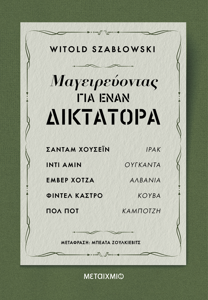 Πώς ικανοποιείς τις ορέξεις ενός δικτάτορα; Επηρεάζει το φαγητό τις αποφάσεις του; Τι βράζει στην κατσαρόλα σου τη στιγμή που κρίνεται η ζωή των άλλων αλλά και η δική σου; Ταξιδεύοντας σε τέσσερις ηπείρους για πάνω από τρία χρόνια, ο Πολωνός δημοσιογράφος Witold Szablowski εντόπισε και κλείστηκε στις κουζίνες με τους πιο ασυνήθιστους μάγειρες του κόσμου: τους ανθρώπους που υπηρέτησαν πέντε αιμοσταγείς δικτάτορες και έμαθαν να επιβιώνουν σε δύσκολους καιρούς. Με ρεαλισμό και αφηγηματική δεινότητα, σε έναν συνδυασμό ρεπορτάζ και βιβλίου μαγειρικής, μας παρουσιάζει κομβικές στιγμές της ιστορίας του 20ού αιώνα… μέσα από την κουζίνα. • Τι έτρωγε ο Πολ Ποτ ενώ δύο εκατομμύρια Καμποτζιανοί πέθαιναν από την πείνα; • Έφαγε πραγματικά ο Ίντι Αμίν ανθρώπινη σάρκα; • Γιατί ο Φιντέλ Κάστρο είχε εμμονή με μια συγκεκριμένη αγελάδα; • Και τι έφαγε ο Σαντάμ Χουσεΐν αφού έδωσε διαταγή να δηλητηριαστούν με τοξικά αέρια δεκάδες χιλιάδες Κούρδοι;