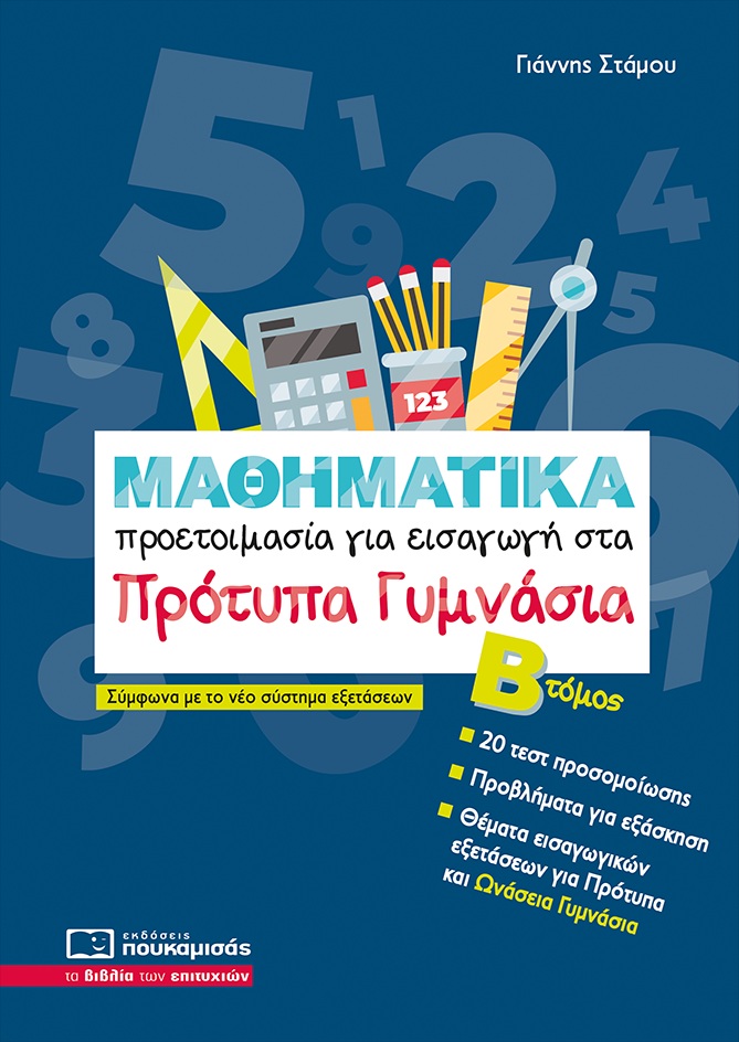 Το βιβλίο αυτό αποτελεί τον β’ τόµο της σειράς Μαθηµατικά, προετοιµασία για εισαγωγή στα Πρότυπα Γυµνάσια, το οποίο περιλαµβάνει 25 τεστ προσοµοίωσης. Σύμφωνα με το νέο σύστημα εξετάσεων. Τα τεστ ακολουθούν τη δοµή και το ύφος των θεµάτων των εισαγωγικών εξετάσεων, δίνοντας τη δυνατότητα στους µαθητές να εξασκηθούν και να προετοιµαστούν κατάλληλα. Μέσα από την πρακτική εξάσκηση, οι µαθητές εξετάζονται σε όλο το φάσµα της διδακτέας ύλης, σε θέµατα ποικίλα και διαβαθµισµένης δυσκολίας, στα οποία, εκτός απ’ την καλή γνώση της θεωρίας, απαιτείται συνδυαστική σκέψη, παρατηρητικότητα και ευχέρεια στην αποκωδικοποίηση των δεδοµένων. Ο β’ τόµος λειτουργεί συµπληρωµατικά του α’ τόµου αλλά και αυτοτελώς. Επίσης, στο βιβλίο µας υπάρχουν προβλήµατα για επιπλέον εξάσκηση των µαθητών, καθώς και τα παλαιότερα θέµατα των εισαγωγικών εξετάσεων για τα Πρότυπα και Ωνάσεια Γυµνάσια 2013-2021. Στο τέλος θα βρείτε τις απαντήσεις για όλες τις ασκήσεις του βιβλίου.
