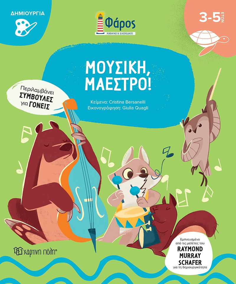 Η μουσική είναι η βασίλισσα όλων των τεχνών και απαιτεί πολλαπλή νοημοσύνη. Αυτό το βιβλίο είναι ένα ταξίδι μέσα στους ήχους και στις πρώτες έννοιες της μουσικής εκπαίδευσης. Παρέα με τον Αρθούρο, τη φιλική κουκουβάγια, τα παιδιά θα συναντήσουν νότες που χοροπηδούν σαν βατραχάκια και χιμπατζήδες που τραγουδούν και χορεύουν, καθώς θα μαθαίνουν για τα μουσικά όργανα και τους ήχους. Οι δραστηριότητες σε αυτό το βιβλίο, εμπνευσμένες από τις μελέτες του συνθέτη, μουσικοπαιδαγωγού και περιβαλλοντολόγου R. Murray Schafer, θα σας καθοδηγήσουν ώστε να βοηθήσετε το παιδί σας να πετύχει την «αρμονική» σωματική και συναισθηματική ανάπτυξη που προσφέρει η μουσική σε όσους την εξασκούν. Με τη σειρά της, η ανάπτυξη αυτή θα εξελιχθεί σε δεξιότητες.