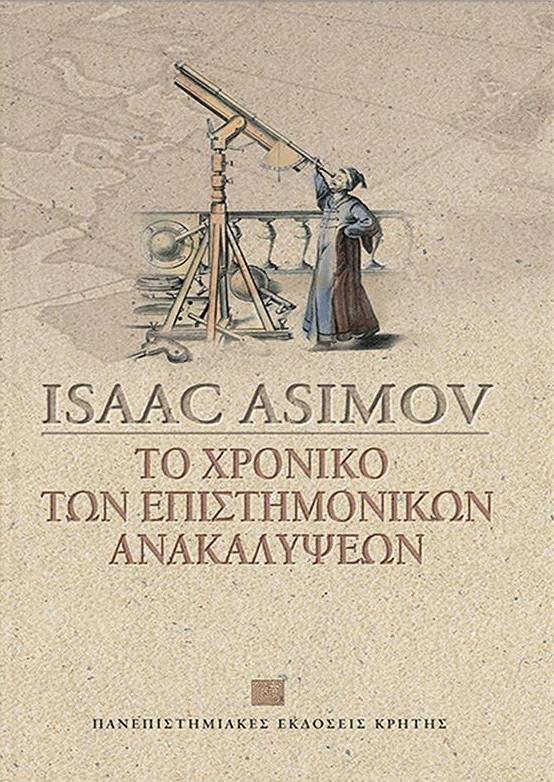 "Το Xρονικό των Eπιστημονικών Aνακαλύψεων" του Ασίμοφ ερευνά διεισδυτικά όλα τα επιτεύγματα των επιστημών στη διαδρομή του χρόνου. O Ασίμοφ εξετάζει, μεταξύ άλλων, τις ανακαλύψεις και εφευρέσεις στην αστρονομία, τις εξερευνήσεις, τη βιολογία, τη φυσική, τη χημεία, τα μαθηματικά, και πολλά άλλα, αποκρυπτογραφώντας κάθε γεγονός με το δικό του, μοναδικό ύφος. Σύντομα κείμενα, που ακολουθούν τις επιστημονικές ανακαλύψεις κάθε περιόδου και έτους, δείχνουν πώς οι επιστήμονες επηρέασαν τον κόσμο και πώς ο κόσμος ανταποκρίθηκε στις επιστημονικές προόδους. Eδώ μπορεί να μάθει ο αναγνώστης: Pώς τιθασεύτηκε η φωτιά το 500.000 π.X, γιατί προστέθηκε το μηδέν στο αριθμητικό σύστημα το 810, ποιος επινόησε το μικροσκόπιο το 1590,πώς αναγνωρίστηκε το DNA ως γενετικό υλικό το 1944 και να γνωρίσει από κοντά: Tην πρώτη πτήση αεροστάτου με θερμό αέρα το 1783, τις ακτίνες X, που ανακαλύφθηκαν το 1895, την ανακάλυψη του Πλούτωνα το 1930, τον Σπούτνικ, τον πρώτο τεχνητό δορυφόρο, που τέθηκε σε γήινη τροχιά το 1957, το πρώτο παιδί του σωλήνα, που γεννήθηκε το 1978, και πολλά άλλα.